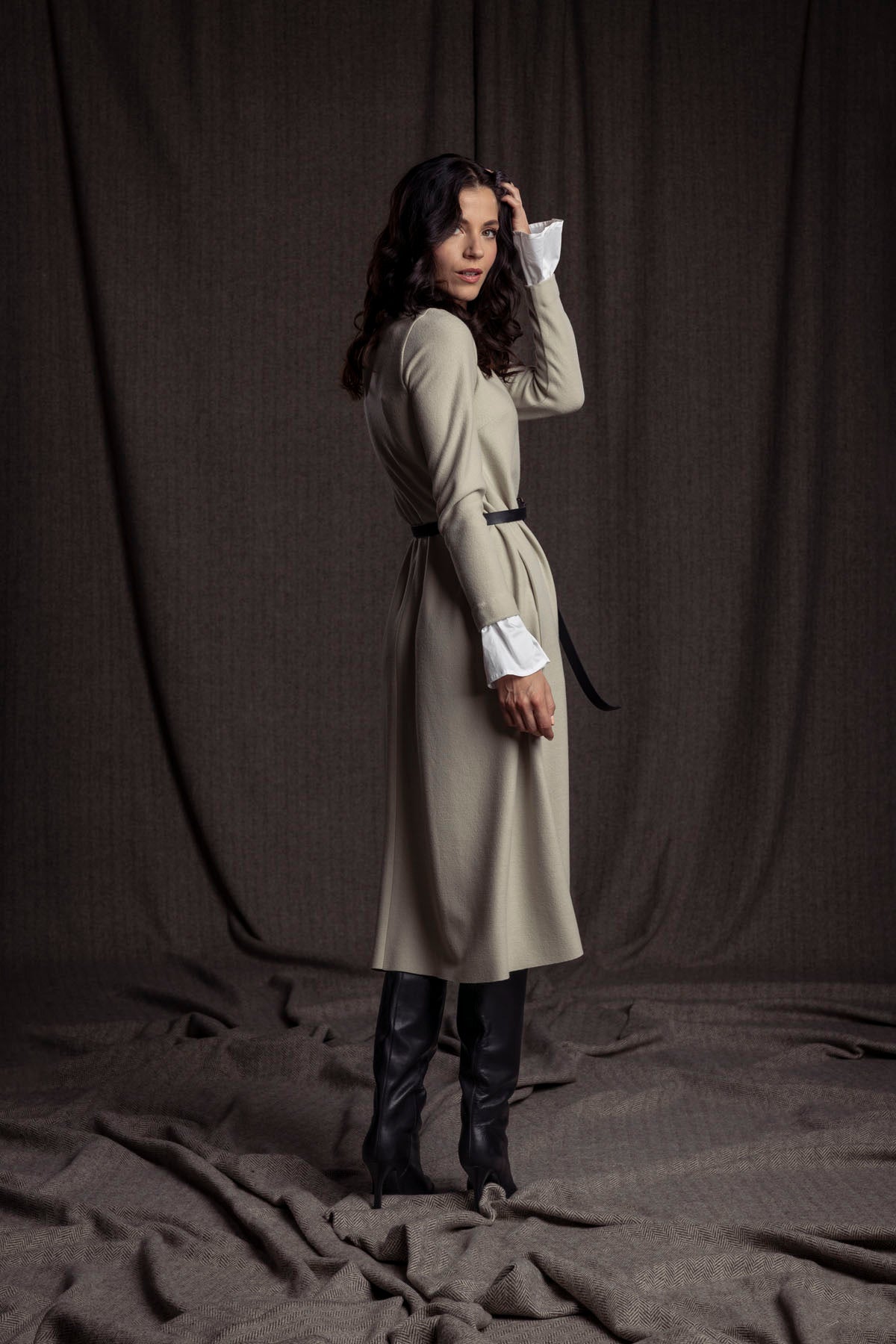 Merino-Wollkleid mit Manschette / beige