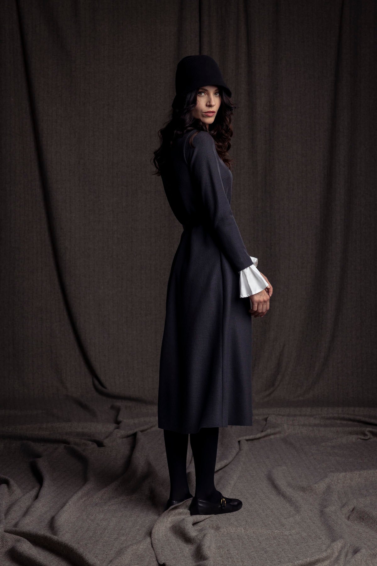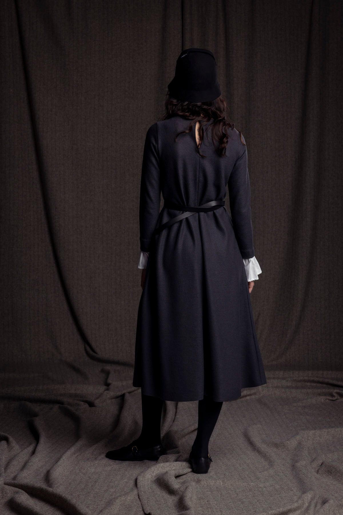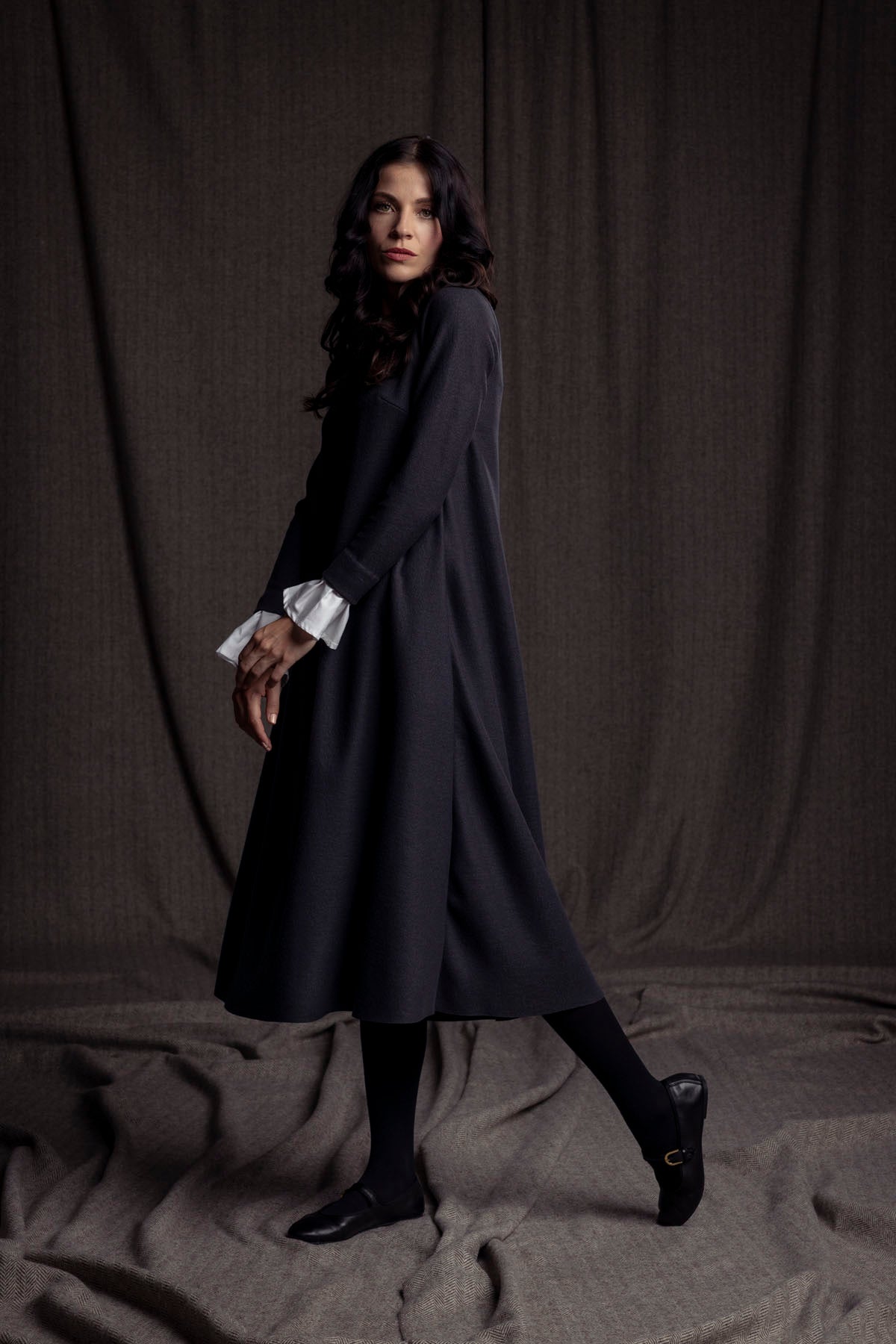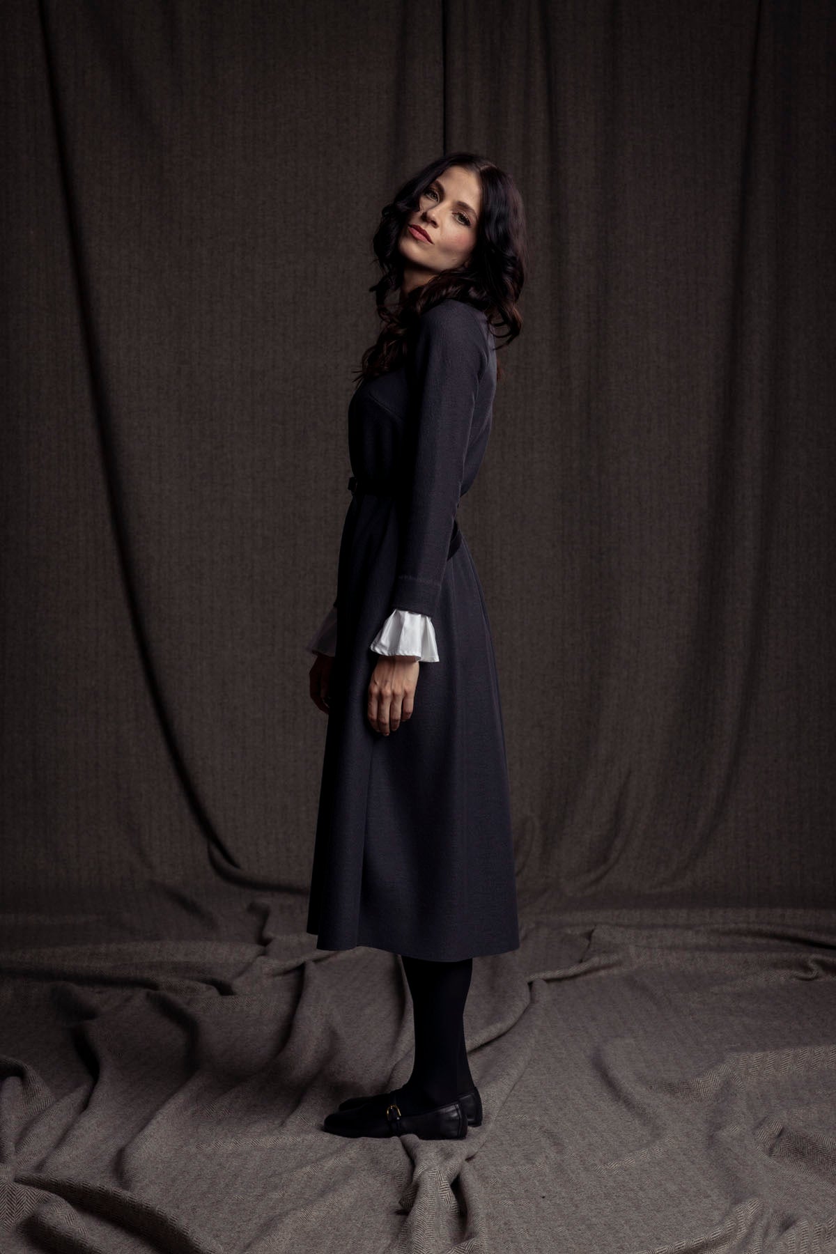 Merino-Wollkleid mit Manschette / dunkelgrau
