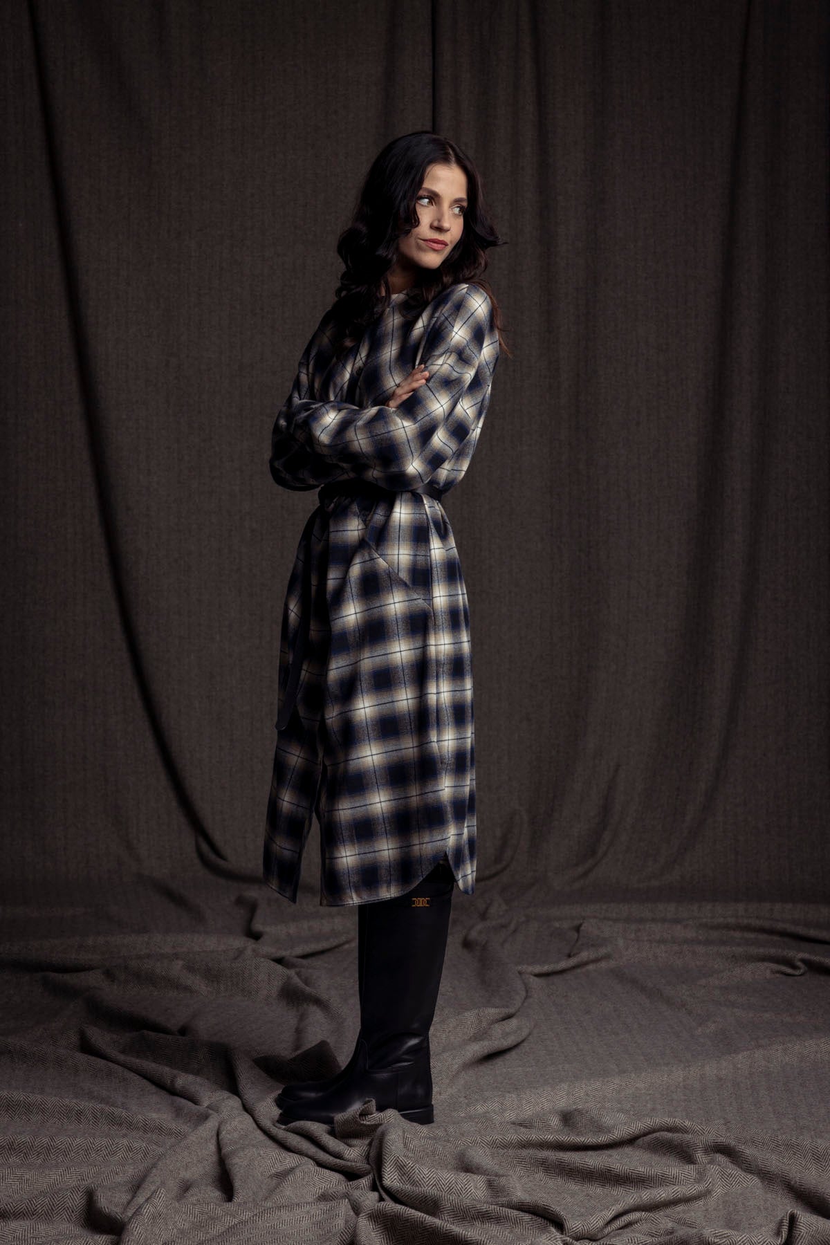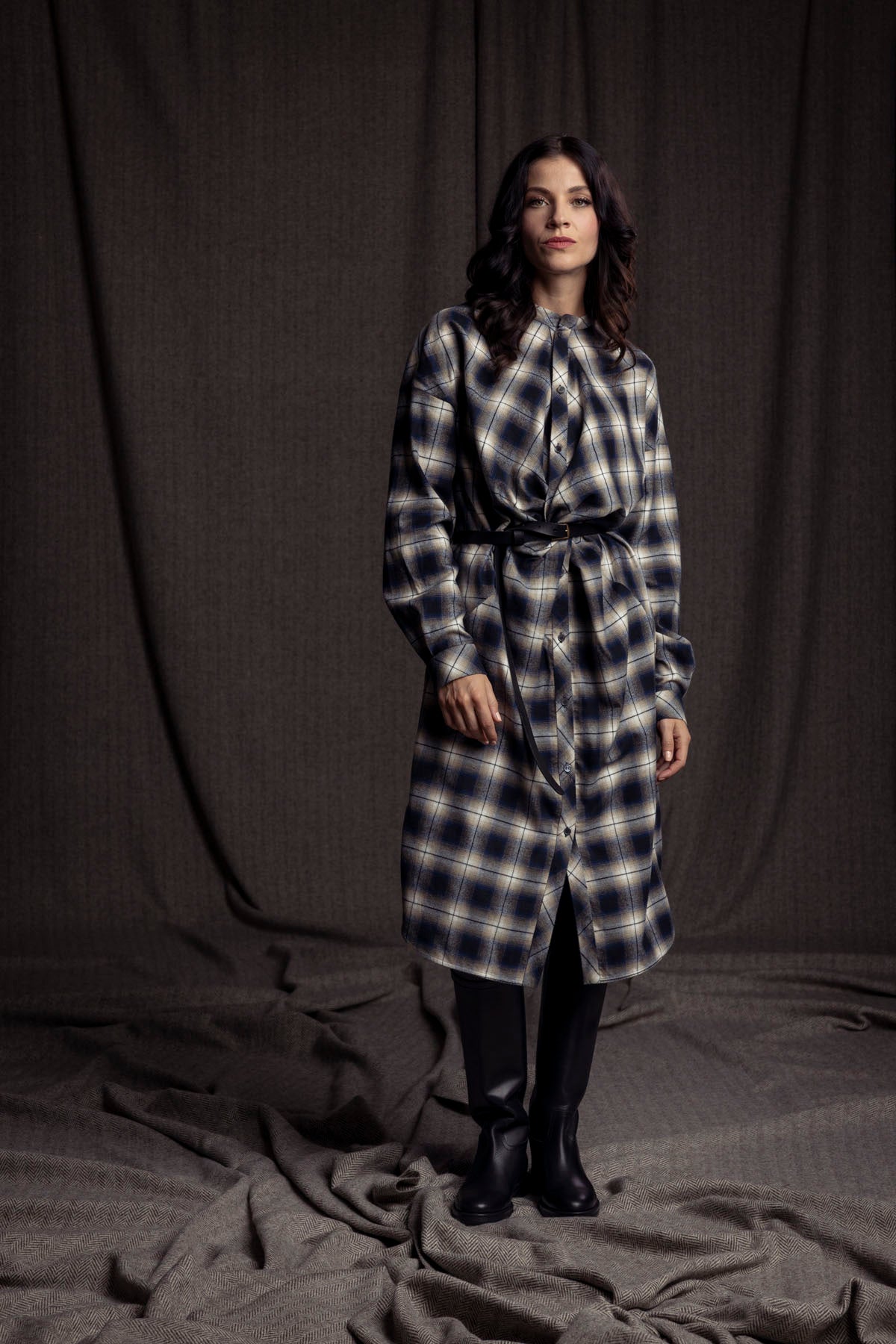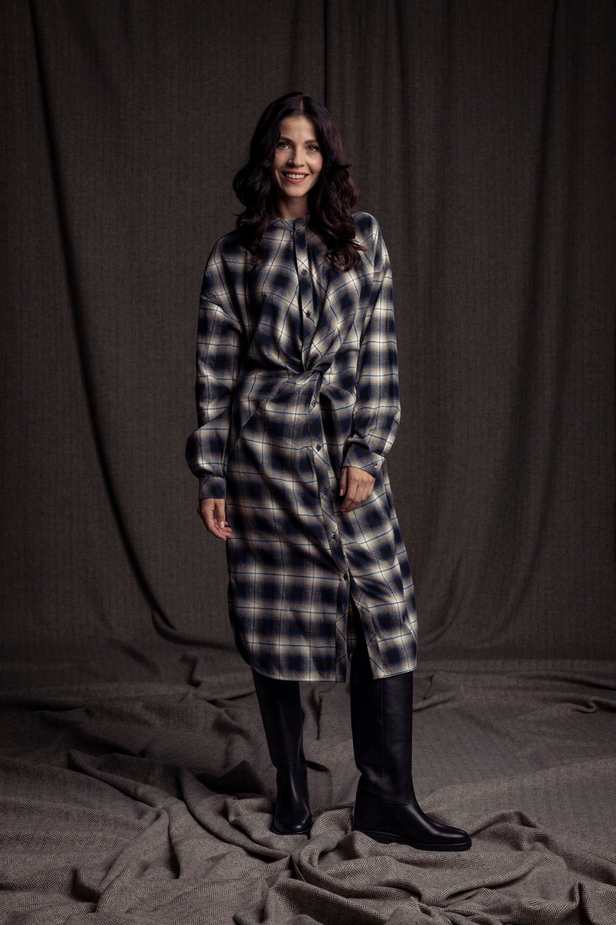 Hemdblusenkleid geknotet / Karo blau-beige