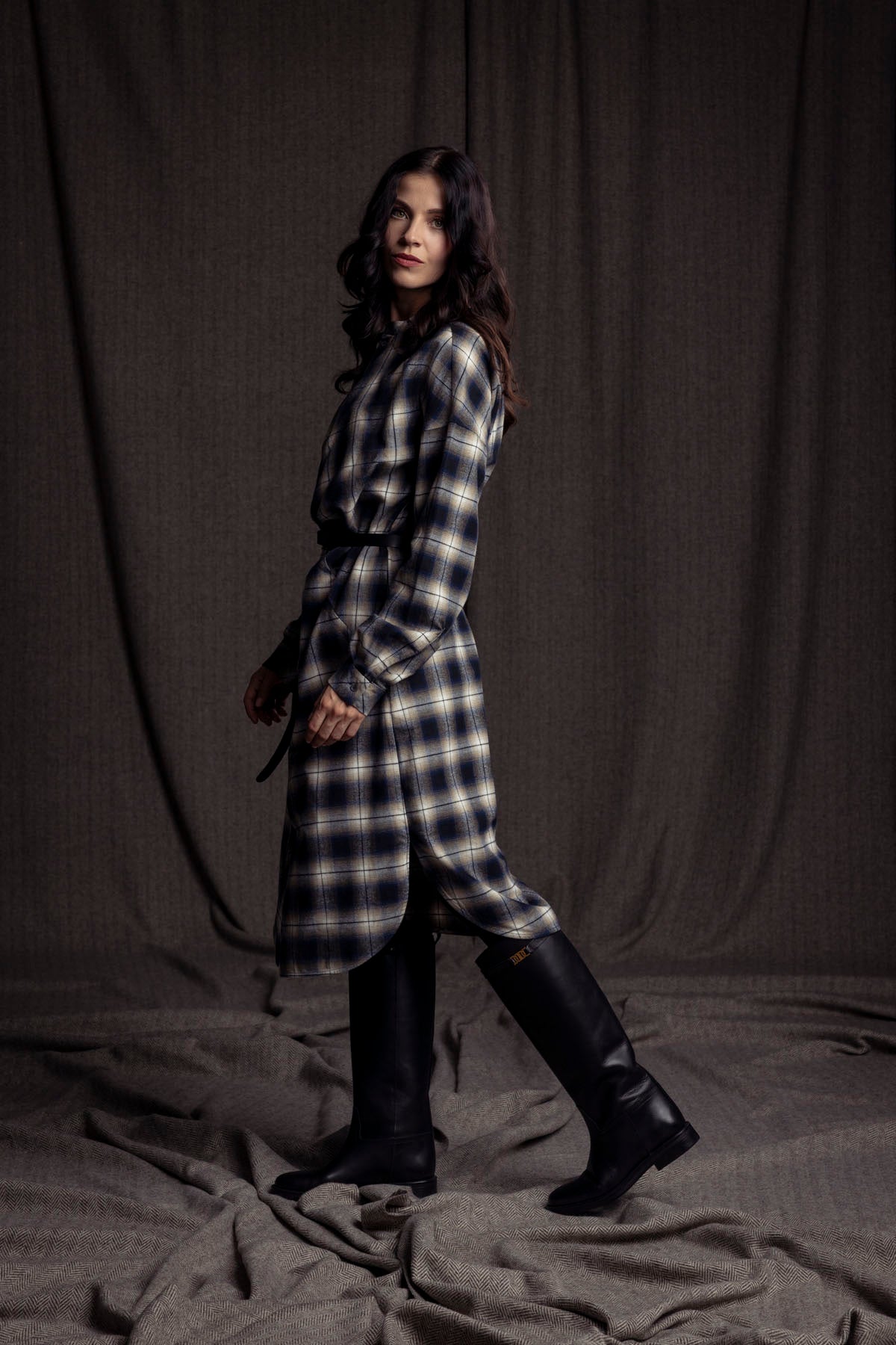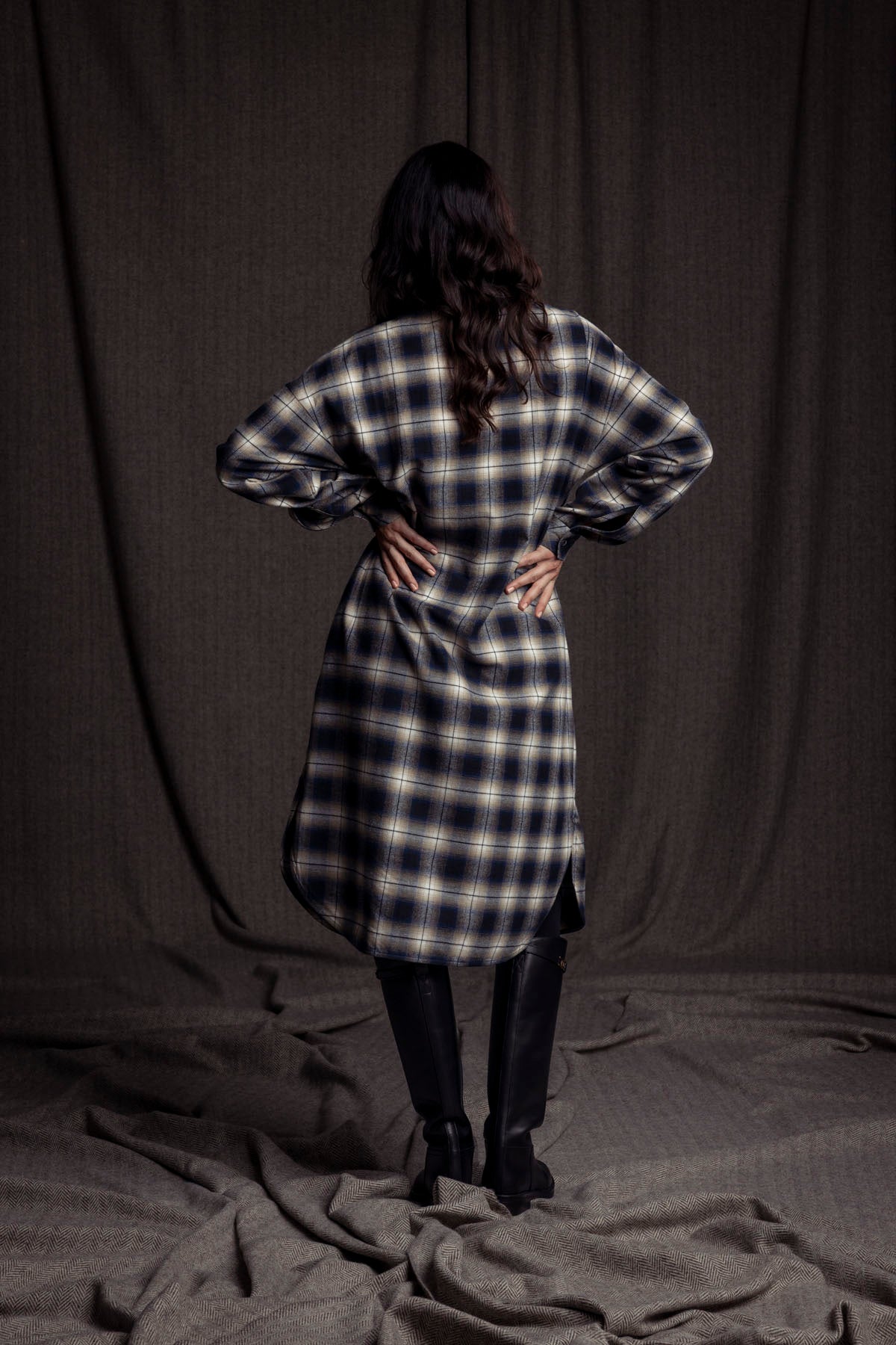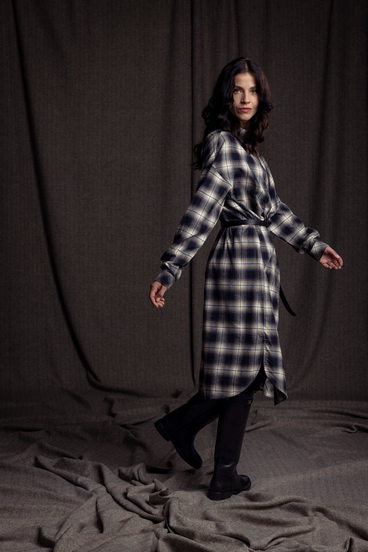 Hemdblusenkleid geknotet / Karo blau-beige