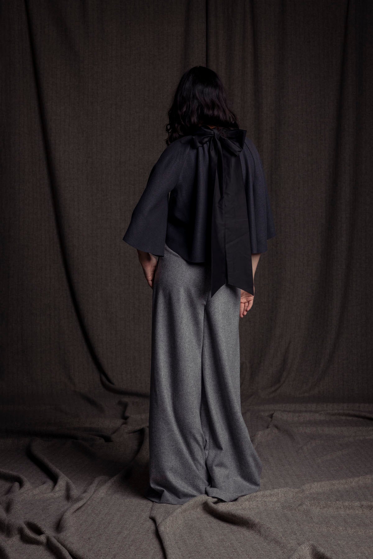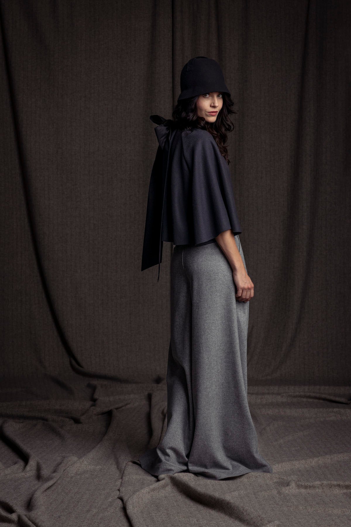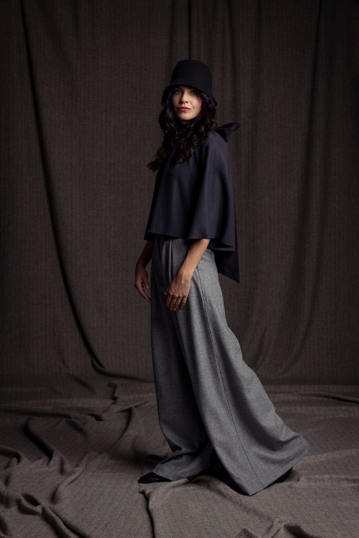Elegante Wollhose mit extra weitem Hosenbein und schmaler Taille mit Bundfalten.
